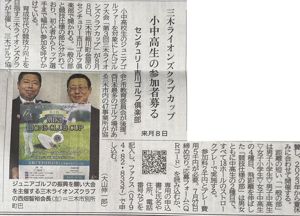 MIKI LIONS CLUB CUPは三木LCが青少年の健全育成と地域スポーツ文化の発展を願い開催しているもので、今期で3回目を迎えました。年々参加者や観覧者が増え、地元ゴルフ関係者や保護者の皆様のご協力のもと、地域にしっかりと根付いたイベントへと成長しています。ゴルフというスポーツを通じて、地域の子供たちに挑戦の場と夢を提供するこの大会は、今や地元にとって欠かせない行事となりつつあります。